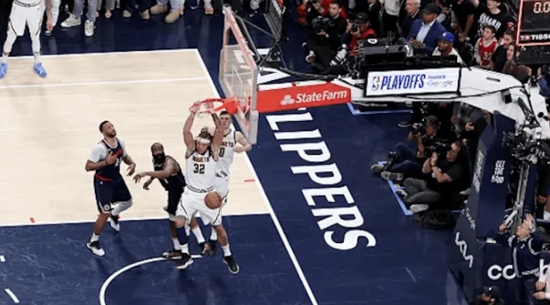 4 月 27 日,NBA 季后赛的舞台上演了足以载入史册的经典一战。掘金客场对阵快船,在这场惊心动魄的较量中,掘金以 101 - 99 险胜快船,将系列赛大比分改写为 2 - 2。而比赛的胜负悬念,在最后一秒才被彻底揭开 —— 阿龙・戈登完成的极限压哨补篮暴扣,不仅帮助球队锁定胜局,更创造了 NBA 季后赛历史的全新纪录。